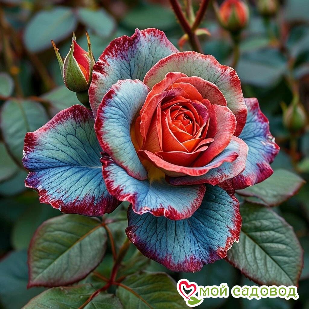 - Уникальная окраска цветка: Главная особенность этого сорта — невероятно красивый и редкий окрас бутонов. В начале распускания они имеют нежный голубой оттенок, который затем раскрывается, демонстрируя насыщенную красную середину и изысканную малиновую окантовку по краям лепестков. Такое сочетание цветов делает каждый цветок неповторимым произведением искусства.